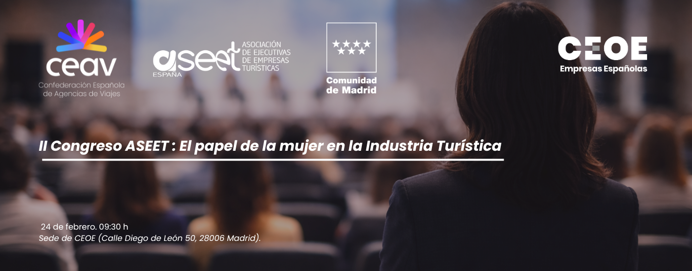 CEOE y CEAV, tienen el placer de invitarle a la jornada II Congreso ASEET: Mujeres que transforman la industria turística. que se celebrará el próximo 24 de febrero a las 09h30 en la sede de CEOE (Calle Diego de León, 50 – Madrid).