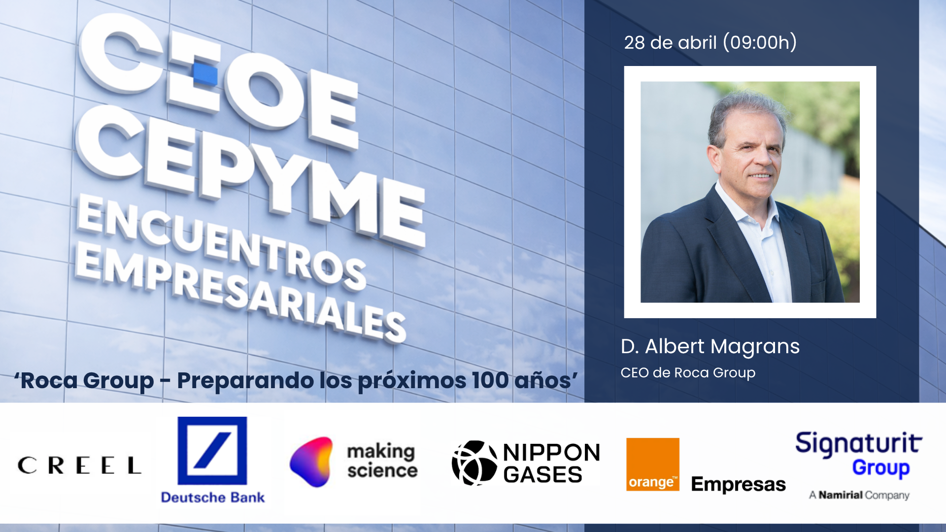 En esta ocasión, contaremos con la participación de D. Albert Magrans, CEO de ROCA GROUP, quien impartirá la ponencia titulada “Preparando los próximos 100 años”.