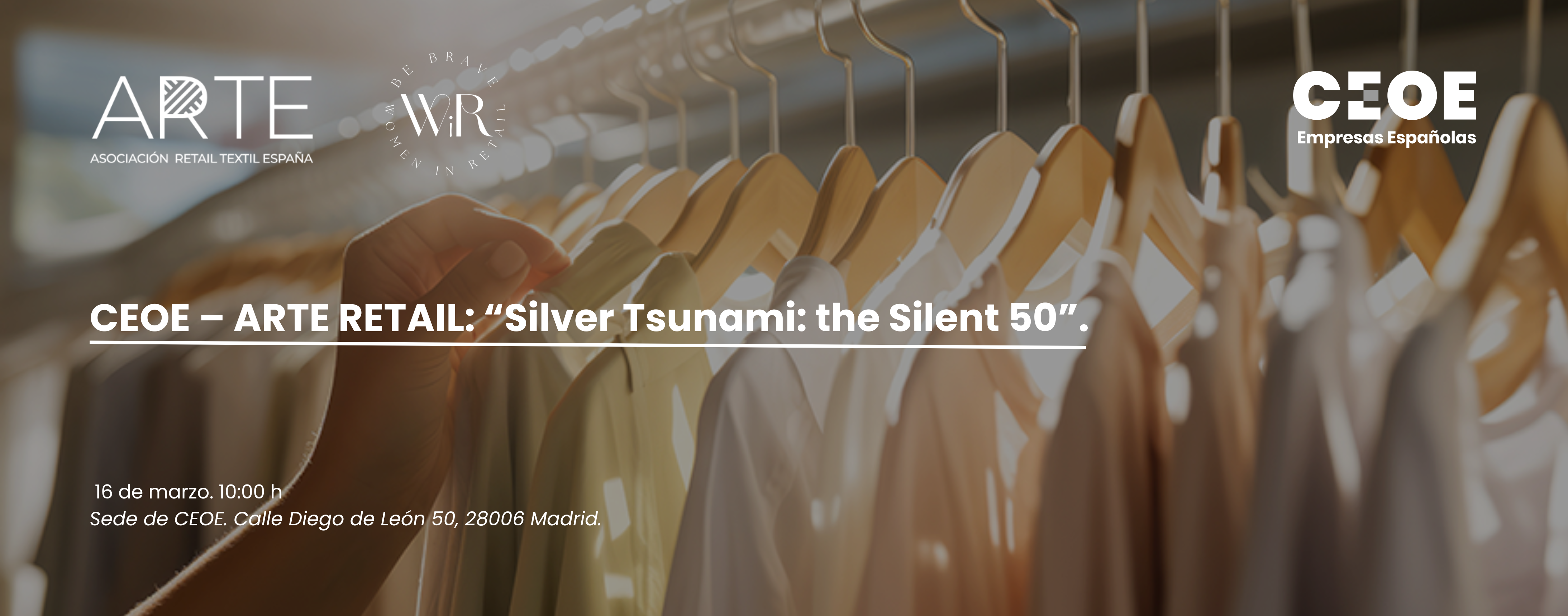 CEOE y ARTE, tienen el placer de invitarle a la jornada " SILVER TSUNAMI: The silent 50"que se celebrará el próximo 16 de marzo a las 10h00 en la sede de CEOE (Calle Diego de León, 50 – Madrid).